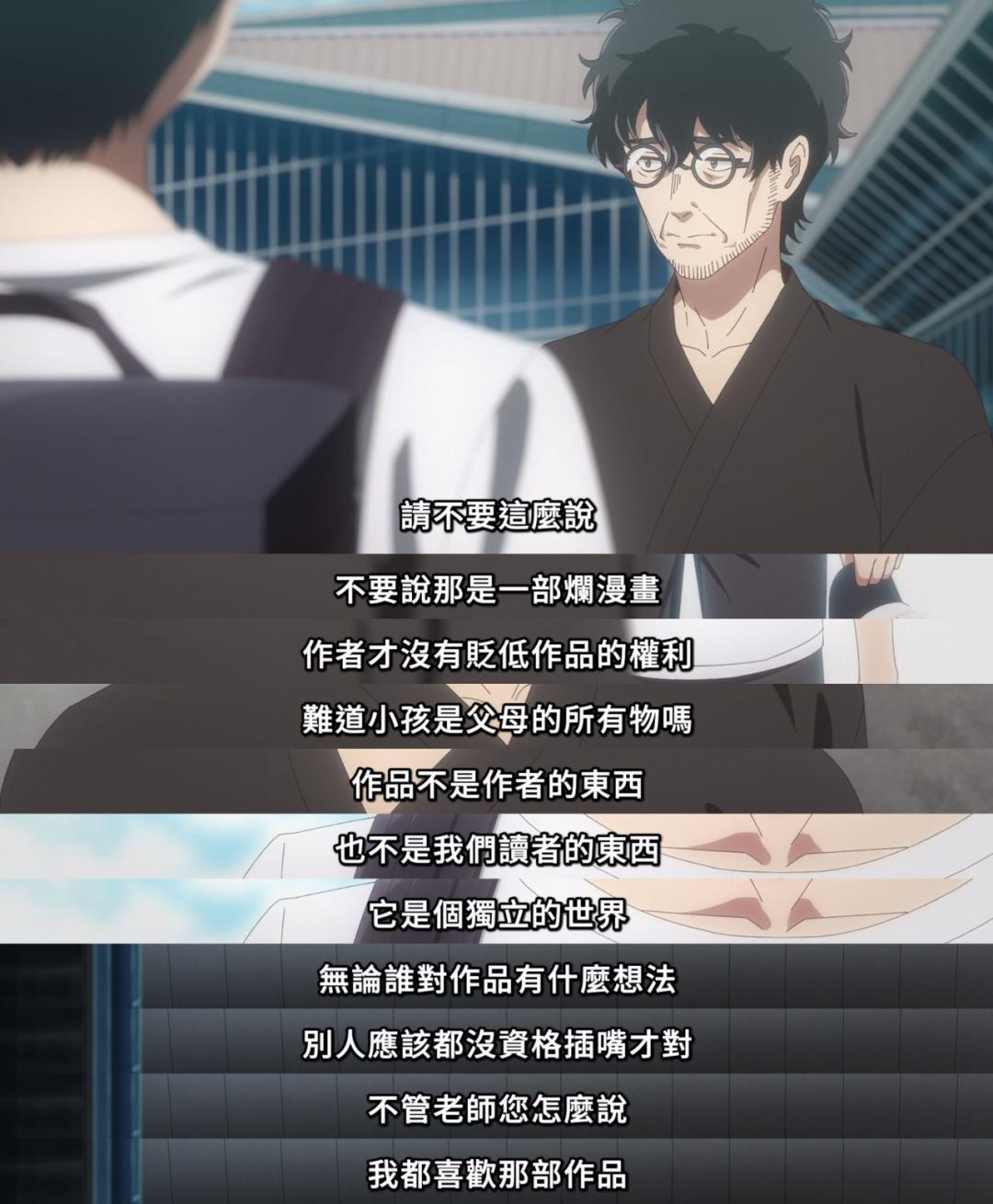 這一場嘴炮鋪墊了近5集,將粉絲與作者,作者與作品,作品與粉絲,父親與女兒之間的所有複雜關係疊在一起。這些議題並不新鮮,甚至可以說有點老生常談,但《2.5次元》用一種最真誠的語氣講出來,它就足夠動人。