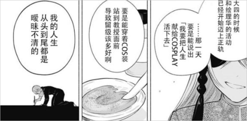 不僅僅是失意的漫畫家,在漫畫後期橋本悠還創造一個因爲想通過COS吸引眼球,被炎上後幡然悔悟的COSER。她坦然地接受了過去的自己,說出:“所謂真正的自己,並不等於最新的自己。改變前的自己一生都會是自己的影子。”