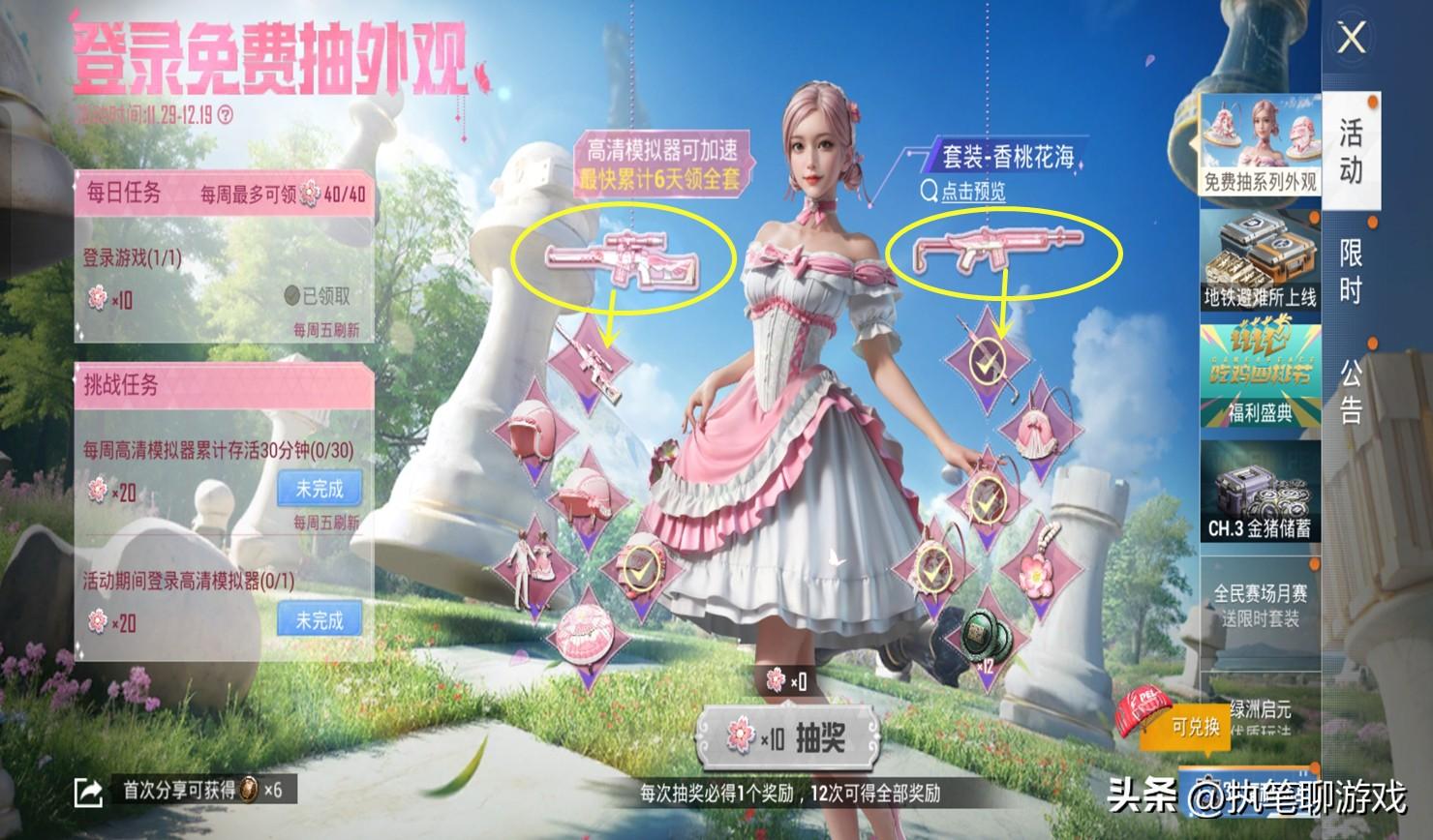 最後來回應粉絲一個小問題,在“香桃花海”的系列任務裏,有玩家認爲手遊版獲得12個獎勵,而進入PC高清版則是14個獎勵,多了2個槍皮,就是“原畫”角色的兩側。