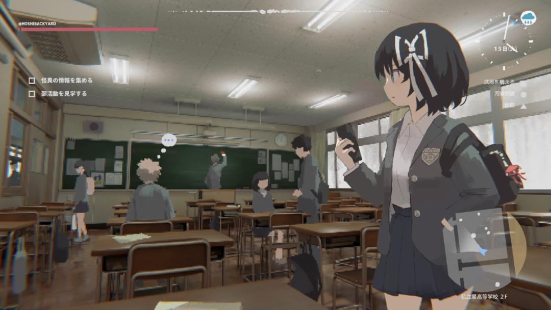 在復現的過程中,「ほし」選擇了自己喜愛的低多邊形設計,爲了讓他更像是遊戲,他還爲插畫單獨製作了不同的UI,從上面的例圖你也能看到小地圖、任務目標、角色血條等一系列UI。