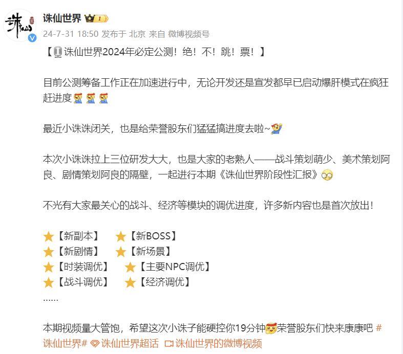 與那些高舉打破MMO行業壁壘旗幟,打出顛覆MMO生態標語的友商相比,《誅仙世界》在宣傳期間將自己的姿態一向放得很低。他們把玩家當成了大老闆、榮譽股東,把自己稱呼成跑腿的“小誅誅”,將玩家反饋的缺點一條一條地記錄下來,再一條條地進行彙報。