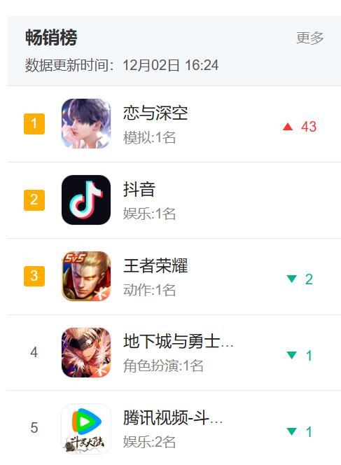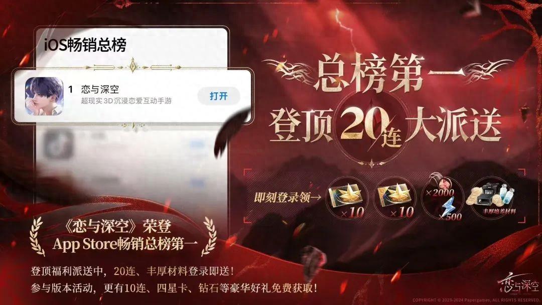 今天(12月2日)開啓新卡池後,《戀與深空》又雙叒衝到了iOS暢銷總榜榜首。