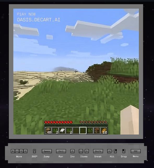 比如之前一度成爲話題的《Oasis》,它實際上就是一款AI即時生成畫面的《Minecraft》,玩家每次轉動視角,它都會自動生成玩家看到的內容。