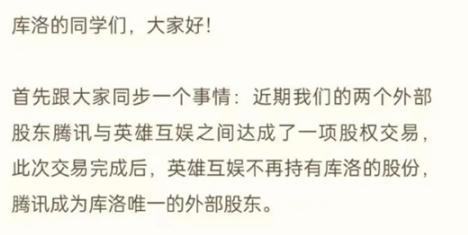 資本大手又發力了,隨着騰訊收購了英雄互娛在庫洛的全部股份,騰訊也搖身一變從第二大股東晉升爲第一,也成爲了了庫洛唯一的外部股東。