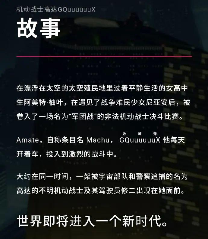 高達系列最新作,TV動畫《機動戰士高達 GQuuuuuuX》公佈。