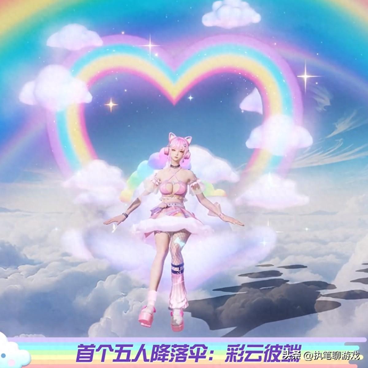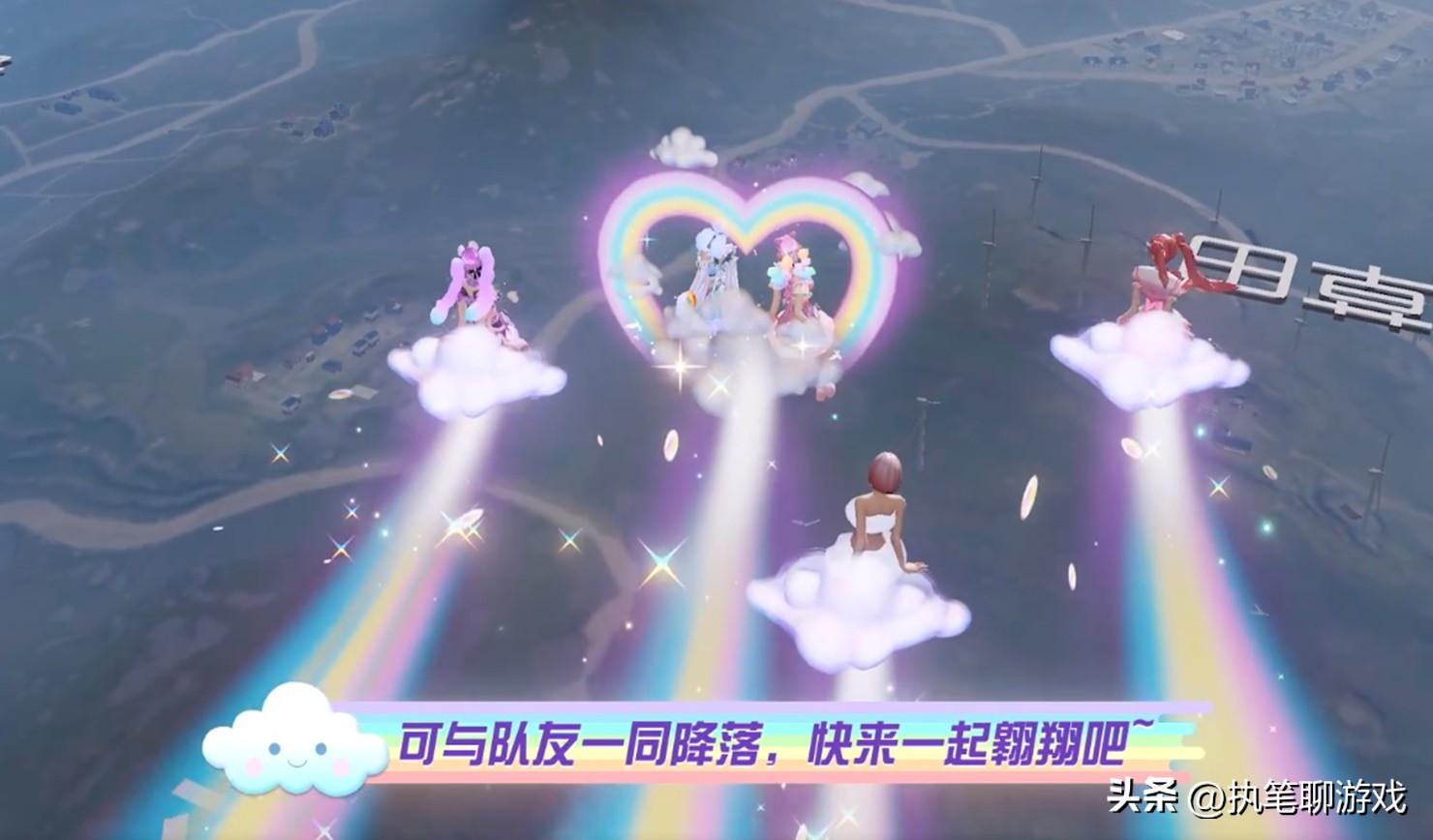 如圖所示,這個全新的飛行器在“隔壁”荒野裏表現還是相當不錯的,除了七彩虹的煙霧特效外,粉嫩嫩的雲朵像極了筋斗雲,而代表主C位的擁有者則會出現一個漂亮的花環,用來彰顯擁有者的身份。
