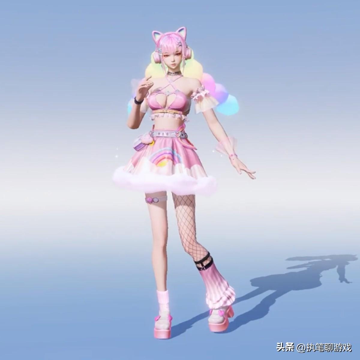 接下來的是套裝之一,這套衣服的版型設計是不是相當熟悉呢?嘿,這種建模的裙子以及黑色網襪還真有一種似曾相識的感覺。沒辦法,《和平精英》裏也有許多類似的小裙子,不過在某些“部位”的細節上來看,明顯沒有“隔壁”荒野的尺度大,你們懂,嘿!