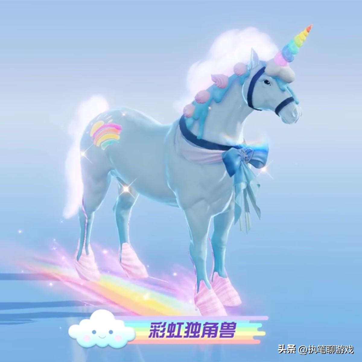 接下來我們看到的是馬兒的新皮膚“彩虹獨角獸”,其實這種獨角獸早在許久之前也被玩家向光子提過建議,甚至當初還有大神玩家親自出手,以PS的方式拿出了作品,希望光子能夠採納。