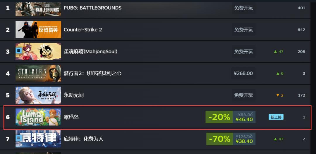 上週二發佈的Steam周銷榜當中(不計入免費遊戲和其他類型應用),中國區榜首是有名的潛行者系列新作《潛行者2》,排在第二位的《露瑪島》則是諸多玩家早就期待的作品。