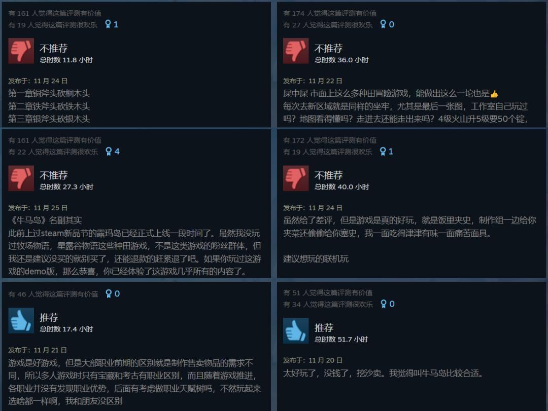 只是不管好評還是差評,“牛馬島”這個直指本質問題的標籤,《露瑪島》在短時間內是拿不掉了。