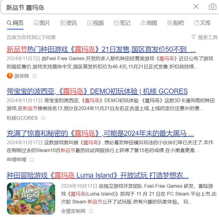 在今年Steam新品節,《露瑪島》就引起不少關注。當時它僅僅開放了遊戲內5天流程的試玩Demo,就到達了新品節排行15位的高度,讓不少種田玩家驚喜連連,甚至有玩家給出“年末最大黑馬”的評價。一時間在B站、小紅書,以及一些單機遊戲媒體上,都能看到推薦甚至力薦這款遊戲的評論和文章。
