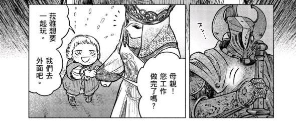 雖然遊戲暫時劃上了句號,遊戲外的故事卻仍在延續。截止到目前,共有兩本《艾爾登法環》官方授權的漫畫在連載中。