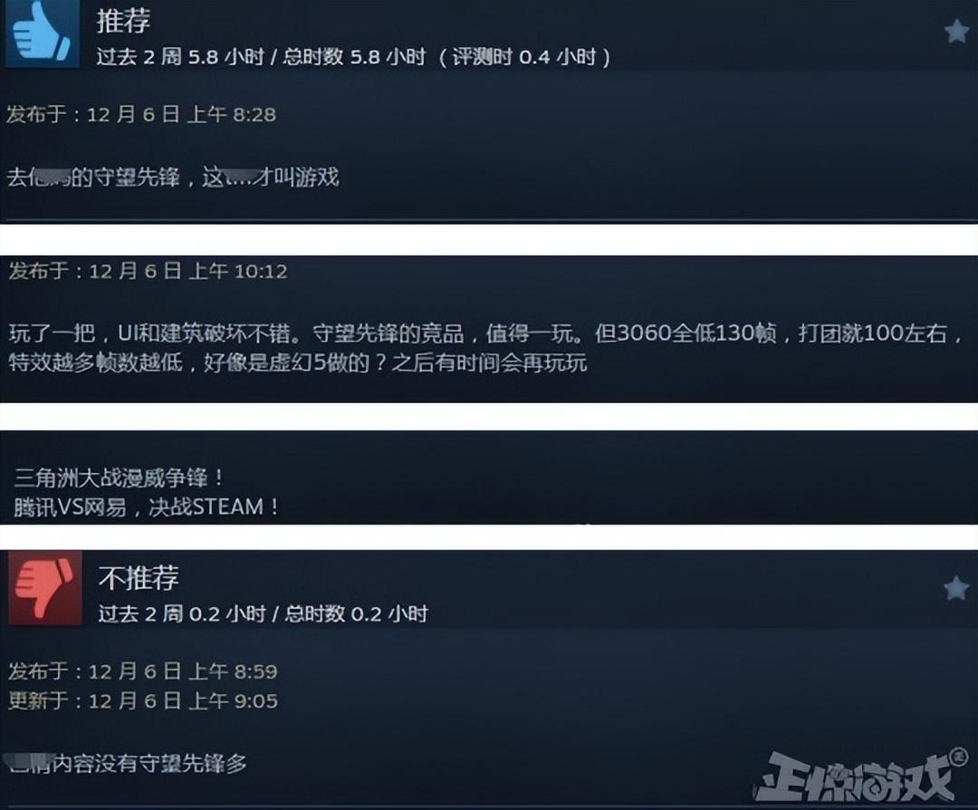 有好評玩家直言,去他喵的《守望先鋒》,這才叫遊戲。還有網友表示,UI和建築破壞做的不錯,是《守望先鋒》的競品,值得一玩。還有喫瓜網友表示,三角洲大戰漫威爭鋒,騰訊VS網魚,決戰steam。