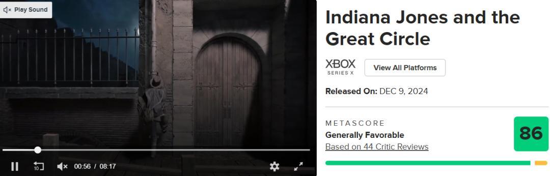 《奪寶奇兵:古老之圈》將於12月9日在PC和XBOX平臺發售,本作目前的媒體平均分爲86分。