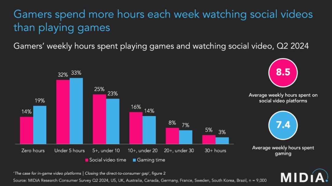 今天沒啥想寫的話題,分享一篇最近看到的遊戲行業研究報告吧。MIDiA Research是一家位於英國,主要研究文化和娛樂的市場研究公司。他們前幾天的一份報告研究了遊戲行業的“雲玩家行爲”,並發現,如今玩家們在觀看遊戲相關視頻上花費的時間,已經超過了實際玩遊戲的時間,算是實錘現在雲玩家佔大多數了。他們主要調查了2023年-2024年期間,美國、英國、加拿大、德國、法國、韓國等9個國家的數據,整理後發現,玩家平均每週花7.4小時玩遊戲,但每週觀看遊戲相關視頻的時間則達到8.5小時。兩項數據的差距不算很大,但我懷疑如果平臺換成B站和抖音,“雲玩家”的佔比估計會更多一些。這項研究其實揭露出了一個問題:比起用來“玩的”,遊戲已經更多是用來“看的”了,成了電影、電視劇、綜藝節目等傳統影視媒介的平替。在信息時代,流量就是money,注意力就是金錢。然而,這些巨大的收入機會,尤其是廣告收入,基本上都被第三方視頻平臺摘走,作爲內容生產者的遊戲公司,卻撈不到一點好處。所以Midia Research的遊戲分析師認爲,比起將大量的潛在收入讓給視頻網站和創作者,遊戲發行商不如另闢蹊徑,將遊戲視頻內容整合到遊戲生態系統內。通過奪回“雲遊戲市場”的主導權,解鎖新的收入板塊。當然,這位分析師的提議並非沒有遊戲嘗試過。比如《死亡擱淺》裏的魔爪“廣告”,在遊戲剛發售時的討論度相當不錯。不過這些出鏡的魔爪飲料其實是遊戲主動添加的,並沒有向飲料公司收廣告費。《逆水寒》手遊剛上線那會,“元宇宙帶貨模式”宣傳的當當響,說是不想逼迫玩家氪金,提出了“在遊戲中植入廣告,用元宇宙賺廣告客戶的錢”的盈利新模式。不是打廣告,起初我真的挺欣賞這構想的。但隨着元宇宙概念的迅速降溫,該模式推出至今的金主只能說寥寥無幾,遠不足以成爲支撐遊戲運營的主要收入來源,並未達到願景中那般美好的效果。在全球遊戲行業增長停滯的當下,找到新的營收渠道,確實是遊戲發行商需要迫切執行的事情。當然,這都不是普通遊戲玩家需要操心的事,有時間打遊戲就開開心心地打,電子陽痿了就心安理得地雲,沒人有資格對你的日常生活指手畫腳。