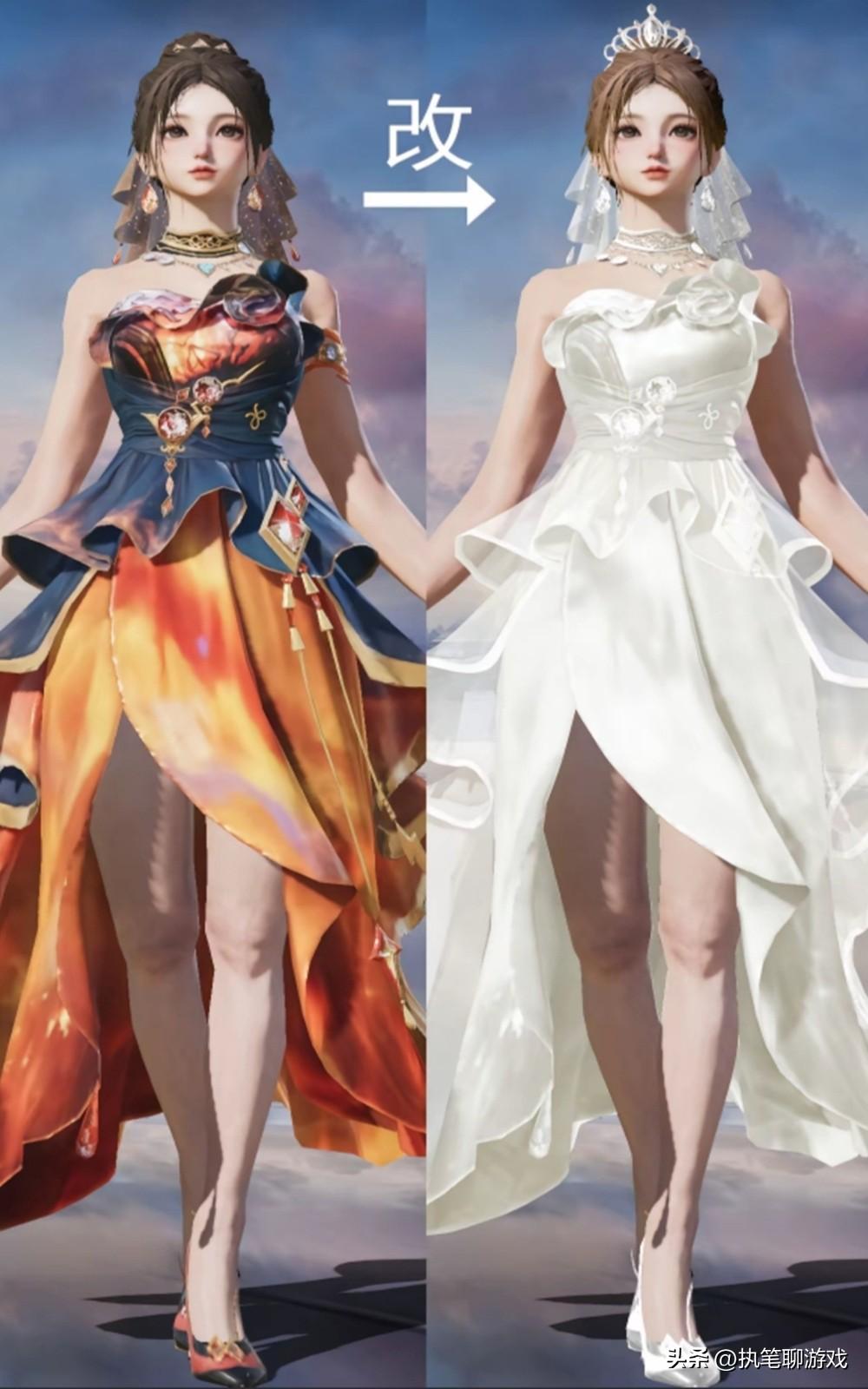 如圖所示,同樣還是“焰舞熾心”的原始版型,只是把顏色換成了純白色,衣服的細節、裝飾,甚至連鞋子的蝴蝶結都沒有任何改動,僅是這麼一個顏色轉變,就讓天哥有一種“意外驚豔”的視覺感受。