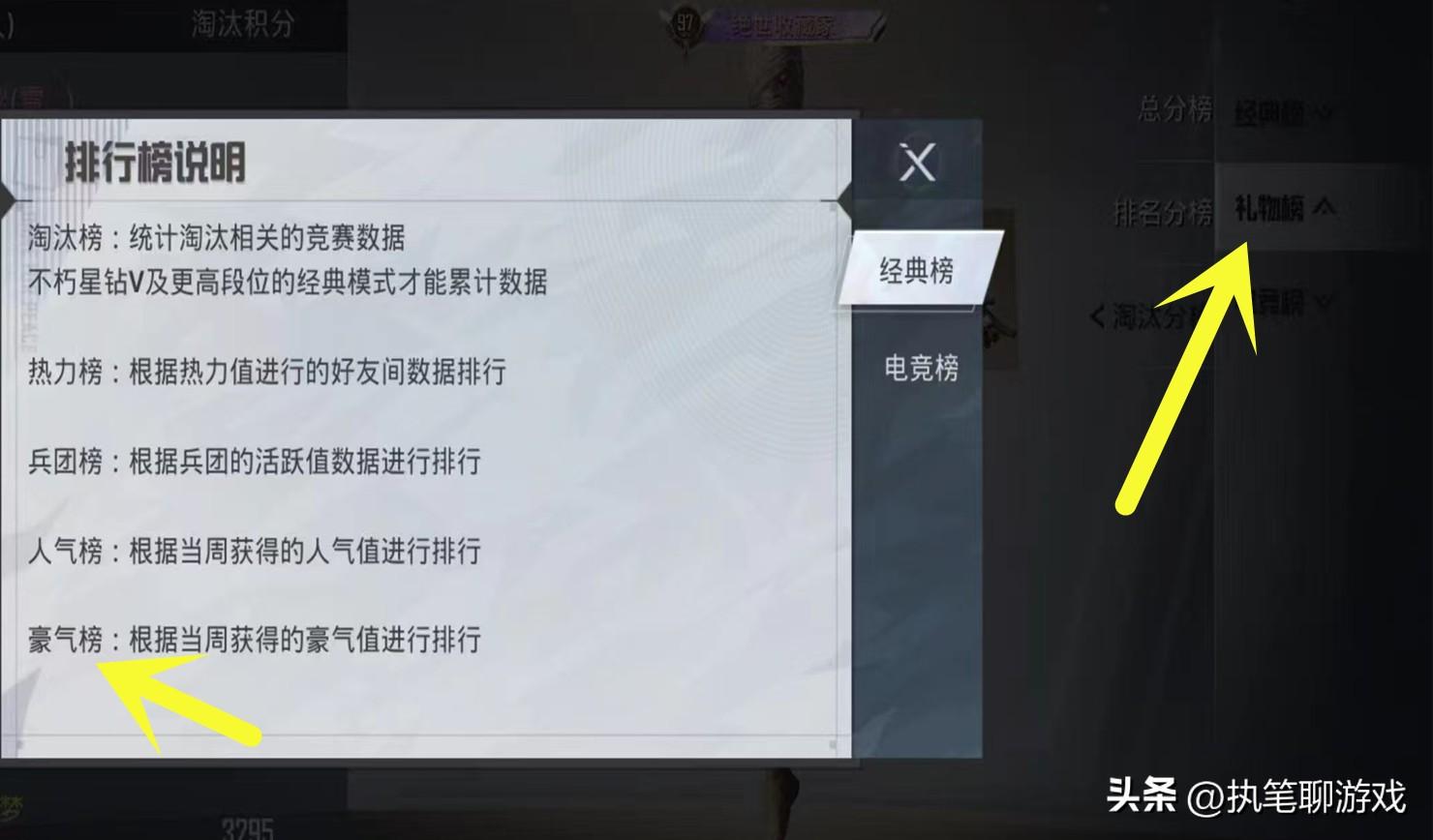 衆所周知,如今的《和平精英》排行榜中,分爲經典榜、電競榜,新增的“禮物榜”則屬於第三個成員。