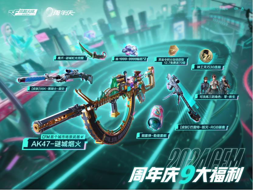 CFM的九週年,不僅是對過去成就的慶祝,更是對未來可能性的探索。在這個過程中,CFM不斷地推出新的遊戲內容和活動,如九週年的9大福利、首款城市景觀定製武器AK47-謎城煙火的推出,以及9999鑽石的贈送,這些都是CFM對玩家的回饋和感謝。