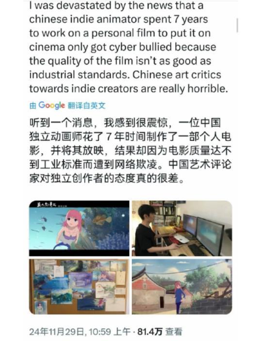 最爲抽象的是,即便是在“自↓己↘嚇↗→自↓己↘”這個魔性臺詞走紅網絡,電影內“自學動畫三年都畫不出來”的崩壞名場面被廣泛討論之後,一些西方媒體仍然認爲《美人魚的夏天》遭受了網絡霸凌,其創作者也受到了不公平的打壓。