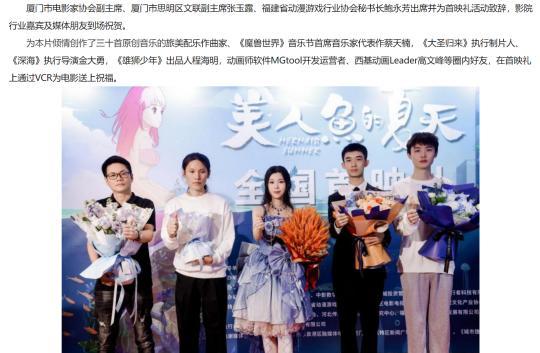 廈門市電影家協會副主席張玉露、廈門市思明區文聯副主席張玉露以及福建省動漫遊戲行業協會祕書長鮑永芳出席了首映禮並致辭。