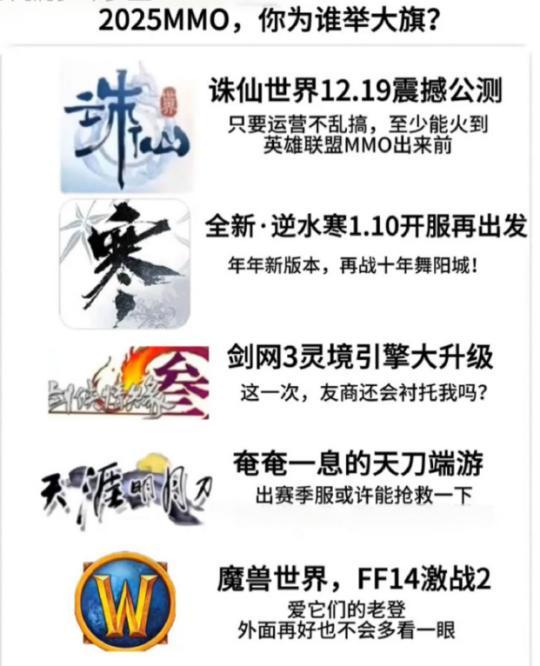 與此同時,臨近《誅仙世界》公測,各家MMO廠商也紛紛搞出了大動靜:劍網3宣佈誅仙世界開服的同一天12月19日開始秦時明月聯動;天涯明月刀冬季資料片【驚鴻】定檔12月11日;逆水寒爆出懷舊交易服跟全新的賽季制改版……