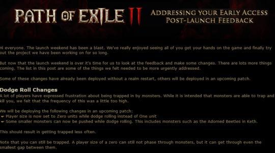 對此,官方緊急進行了各項玩法的微調與修復,譬如說爲翻滾時提供無視碰撞體積的特效,避免玩家被怪物卡牆角,增加道具和遊戲內貨幣的掉率,保證玩家不會在開荒初期爲過於昂貴洗點費用發愁。