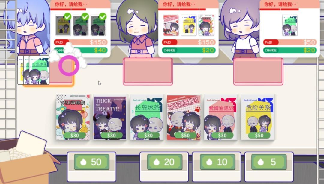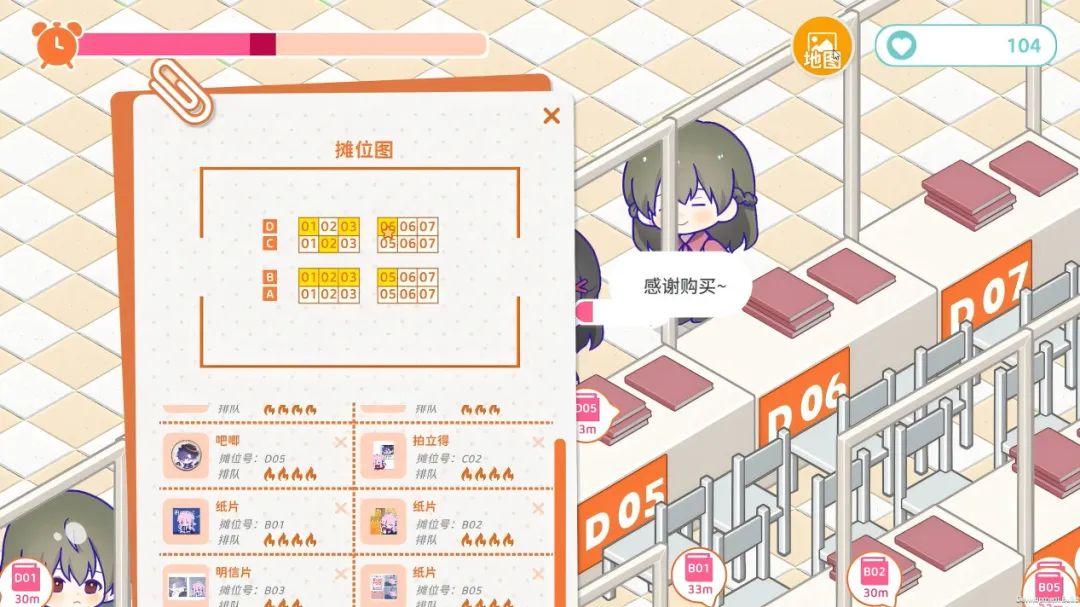 遊戲裏將會舉辦各種大大小小的漫展。你既可以是熱衷買買買的顧客。提前瞭解每個展子、每個攤位售出的穀子,並且成爲時間管理大師,以最短的時間、最快的速度穿梭於攤位之間。
