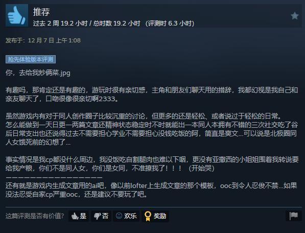Steam好評率92%的同人女模擬器,怎麼疑似是拼好飯喫中毒後的美好幻想?