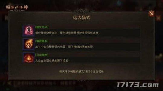 在即將到來的遠古副本玩法中,玩家每次進入地下城時,都會隨機觸發1-2個遠古詞條,這些詞條類型多樣效果各不相同,如何應對它們是每位玩家的必修課。其中不僅有能爲怪物提供護盾、增強怪物輸出的詞條,也有能傷害玩家、造成干擾延緩玩家進度的詞條。還有一些詞條雖然能幫助玩家,但同時也會給怪物帶來大幅提升。邪惡的力量正在地下城中肆虐,唯有在難度升級的挑戰中獲得最終勝利,才能收穫更加豐厚的獎勵。勇士無畏,正義必勝!