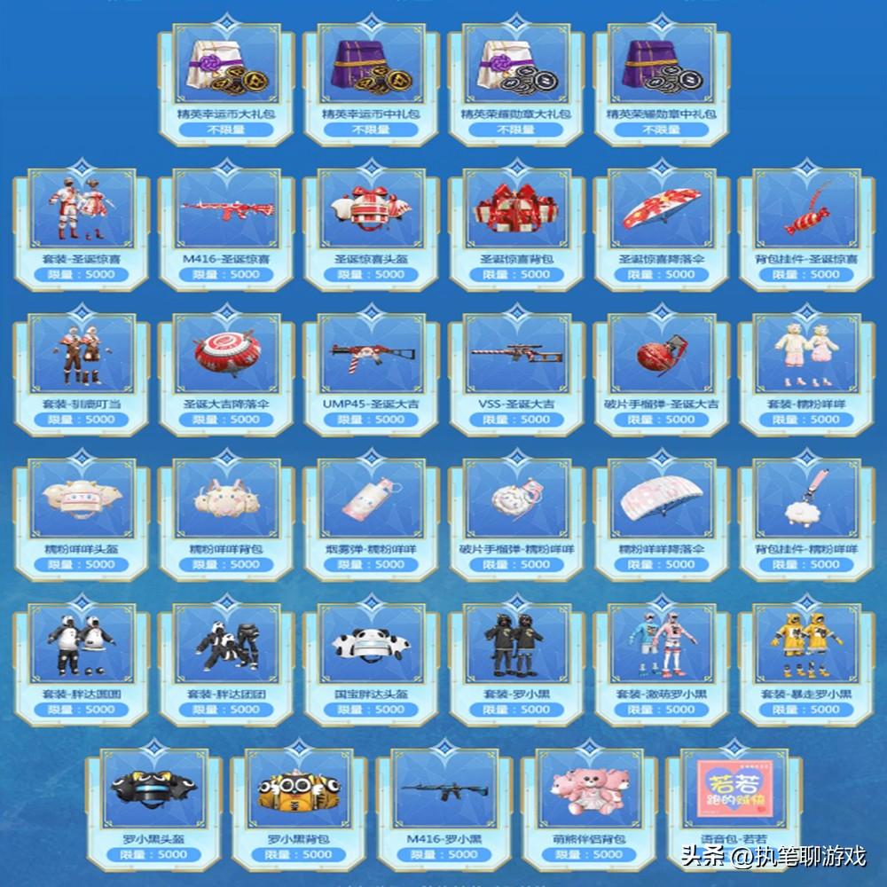 如圖所示,看着這密密麻麻的“名單”後,基本上可以篤定這次確實是24年最後一次返場了,除了前文提到的一系列經典外,還有聖誕驚喜、馴鹿叮噹、聖誕大吉等節點系列,同時還有糯粉咩咩、胖達團團/圓圓、羅小黑、語音包等一系列。
