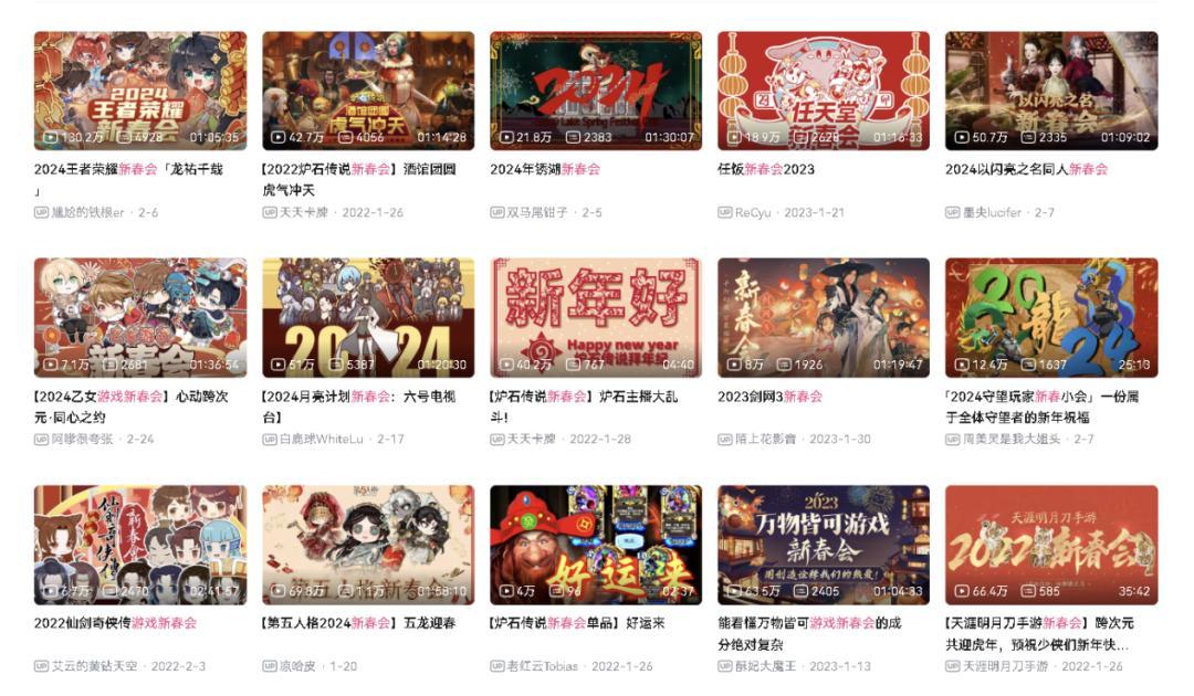 答案是,他們能自發地,或在平臺引導下,創造出極其強大的內容生態。像遊戲圈的“遊戲新春會”,在幾年前,它還是玩家自發的二創行爲,是那種大家各自湊一湊節目、整整活的民間活動;但幾年後,它已經變成了很多遊戲玩家的春晚,甚至逼得大量官方下場卷新春會,把二創變成了正式的“春晚”。到了這兩年,有些遊戲的新春會甚至能達到4個小時、60多個節目……