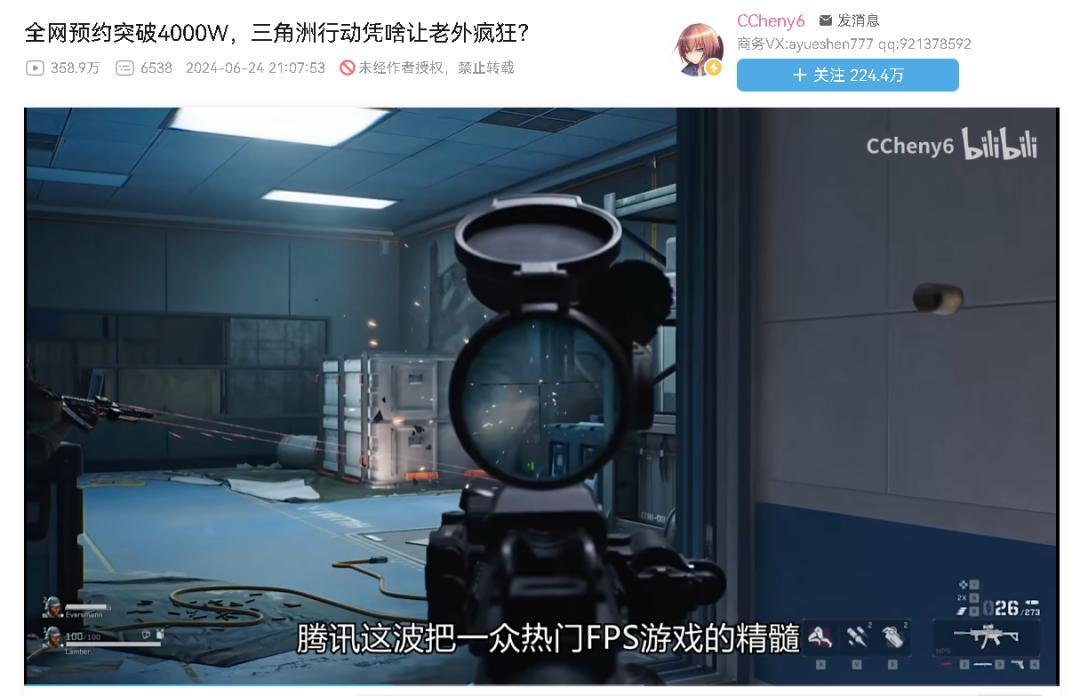 當然,B站玩轉內容營銷的這套路子,也不止能應用在自家的非二遊產品上。比如在騰訊天美的FPS大作《三角洲行動》上線時,B站依然通過各種各樣的內容合作,幫這樣一個與二次元不搭噶,還相對較老的大IP,在較短的時間內成功地衝擊大DAU,拿到了一個數字量級可觀的新進成績。