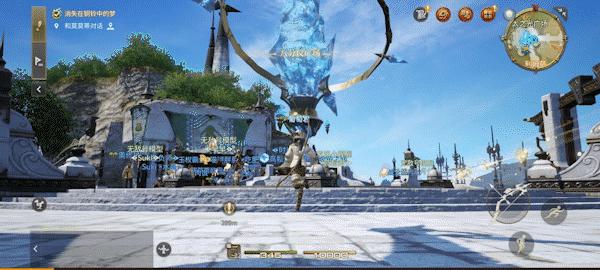 再比如,身處主城時,玩家可以隨時隨地打開地圖,傳送至城內任一已解鎖的水晶傳送點,而在端遊裏,玩家必須在水晶和水晶之間傳送;