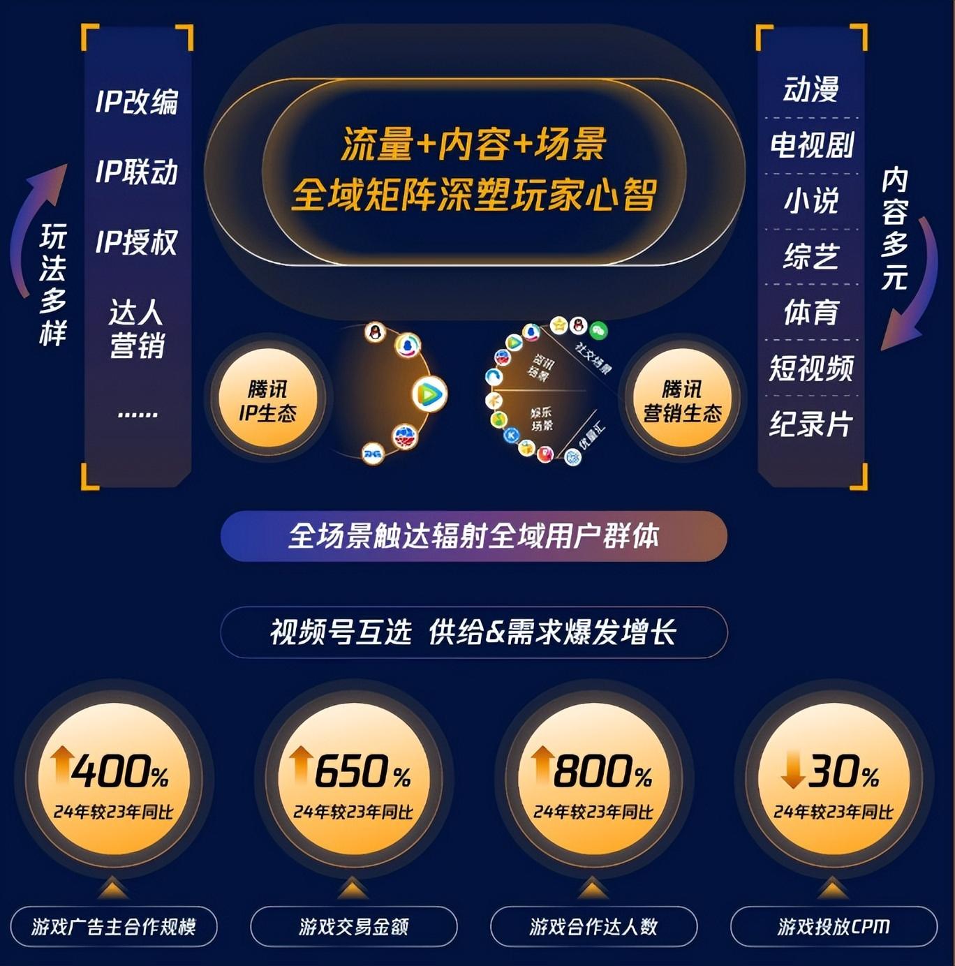 在2024下半年,能明顯看到騰訊廣告生態當中出現兩個新的選擇機會:微信視頻號互選生態的突圍;IP聯動、IP植入營銷打法的規格變化。