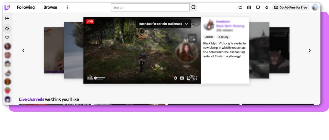 所以,《黑神話:悟空》把目標聚焦到亞馬遜旗下的Twitch直播,藉助創作者通過已有品牌影響力+廣告投放,憑藉主播們的影響力和節目效果儘可能地維持住《黑神話:悟空》的熱度。最終形成“流量-直播-購買”的正循環。