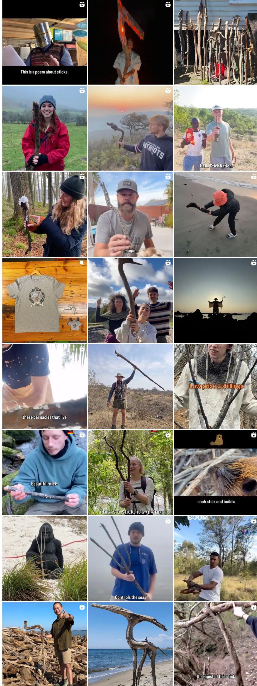 賬號最開始是兩個人自娛自樂,現在變成了全世界木棍愛好者的興趣社區,他們每個月初都會舉辦一次「本月最佳木棒」的錦標賽。