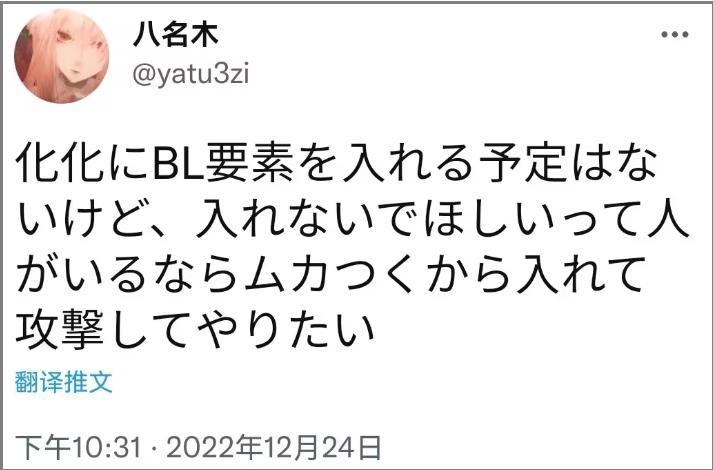 “雖然不打算在文字化化中加入BL要素,但是如果有人希望我不要加入的話,我就會加入予以還擊,因爲我很生氣。”
