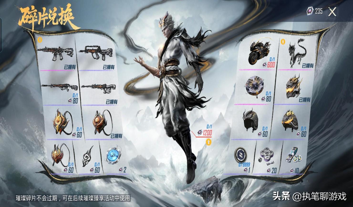 其中的升級飛行器需要240個碎片;9級槍AKM、摩托車均爲600個碎片;紅裝則是一如既往,全是1200個碎片。