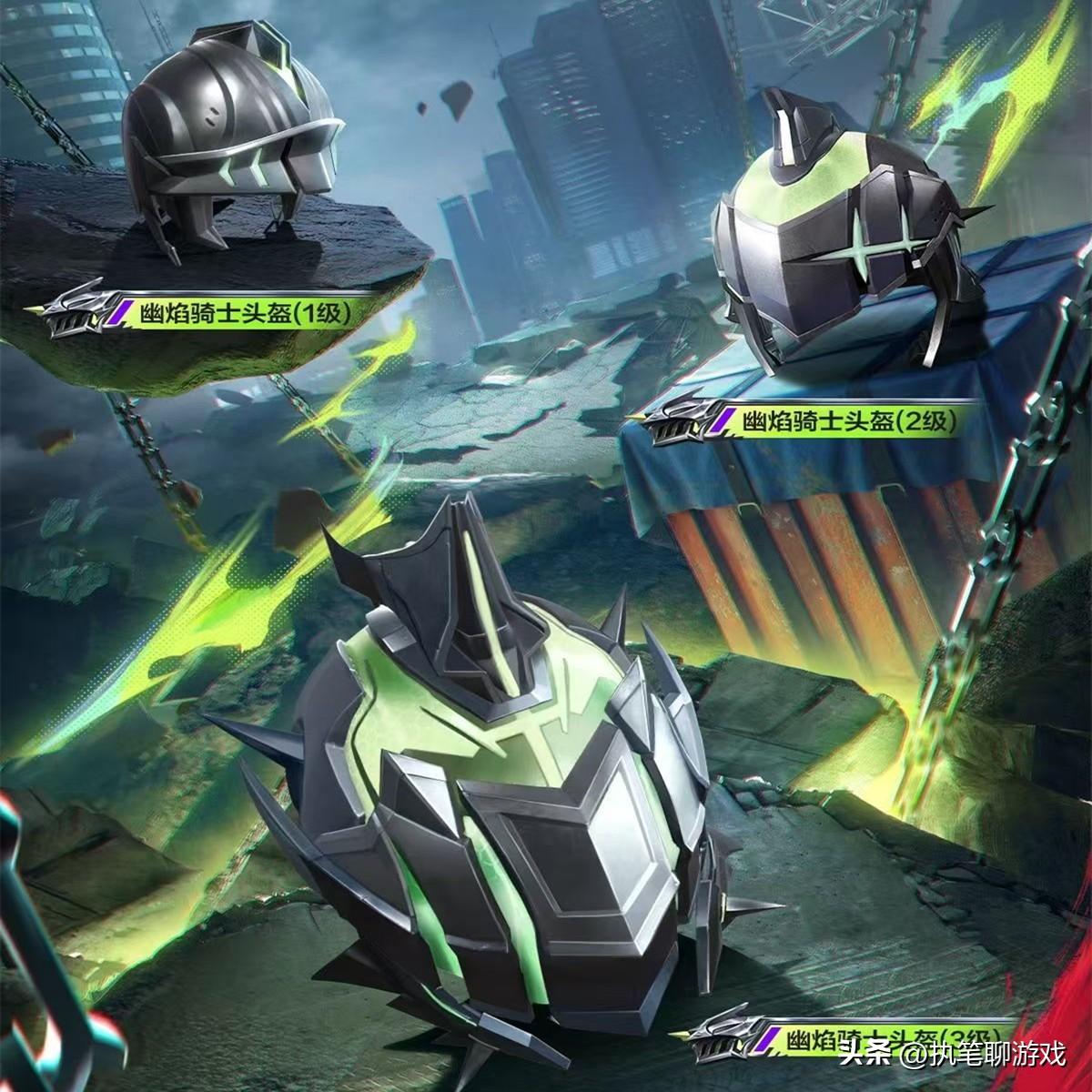 接下來登場的是頭盔,從外觀來看的話,光子重新建模後加入了一些科技元素,再加上綠色幽焰的動態表現,個人覺得還算中規中矩吧。