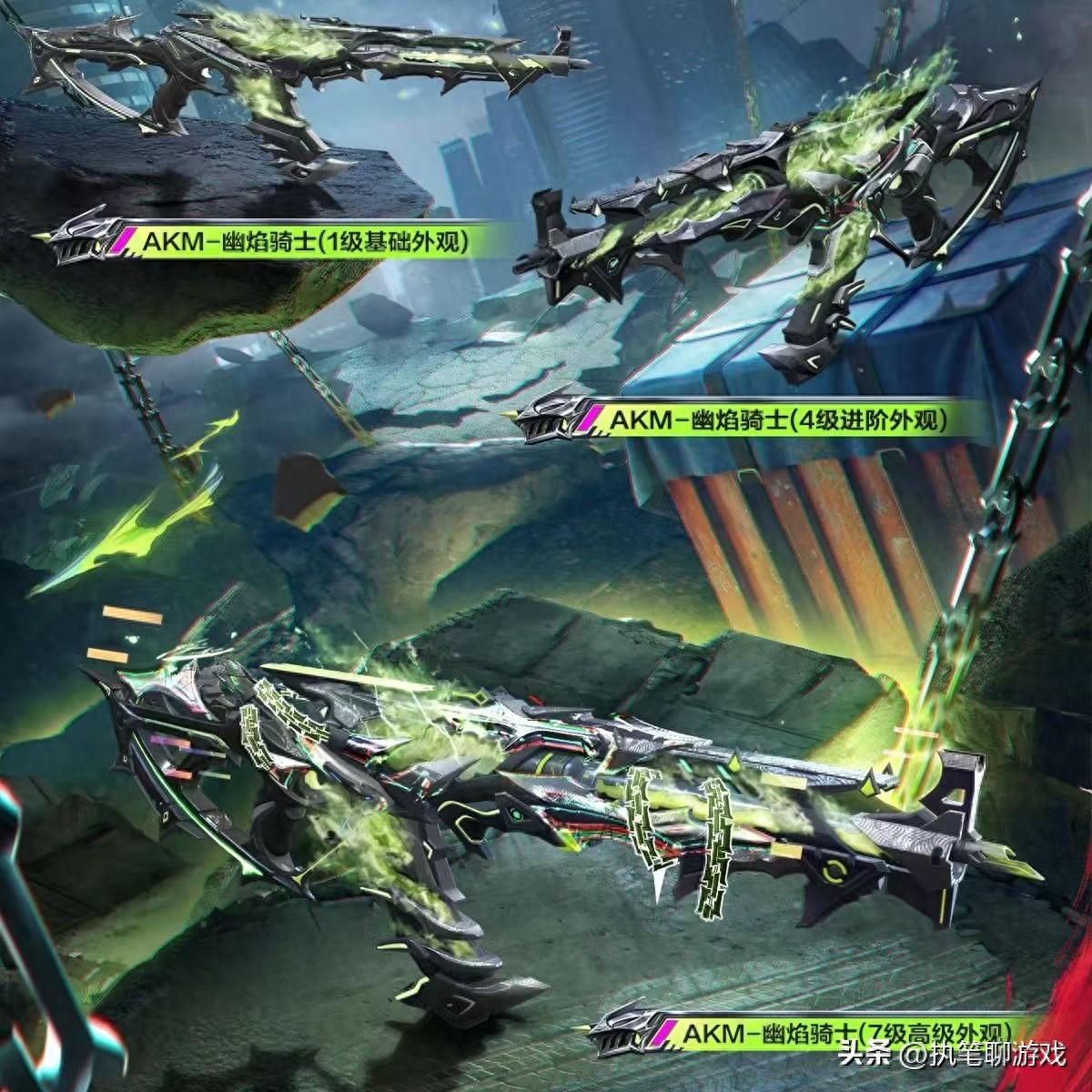 首先我們來說槍皮,此前解包發現之初,天哥就說過是9級AKM,果不其然,光子也沒有讓期待的玩家們失望,全身佈滿綠色火焰、鎖鏈,以黑色爲主,看起來那叫一個相當炫酷!