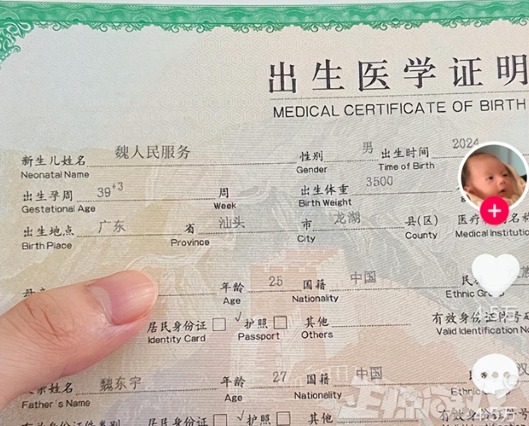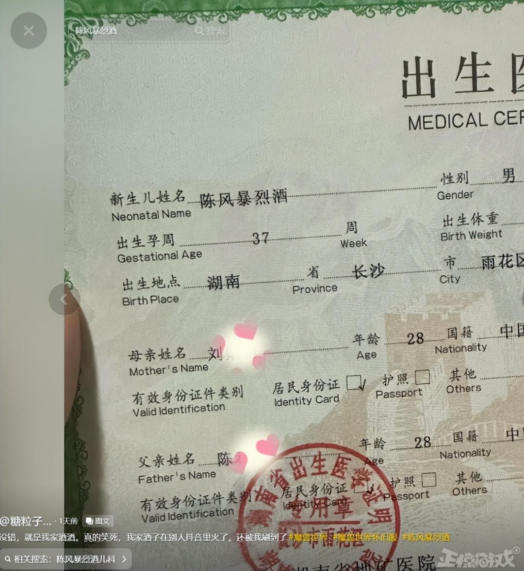 Emm,這位寶媽直接就曬出了孩子的出生證明,的確是陳·風暴烈酒無疑。