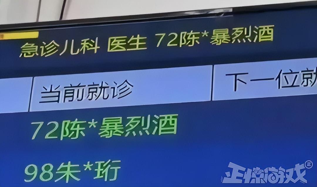 根據當事人的敘述,是他在醫院掛號時無意瞥見大屏幕出現一個熟悉的名字“陳*爆烈酒”,立馬就錄了下來發在網上,想問問孩子父母是不是真給娃起名叫陳·風暴烈酒了?