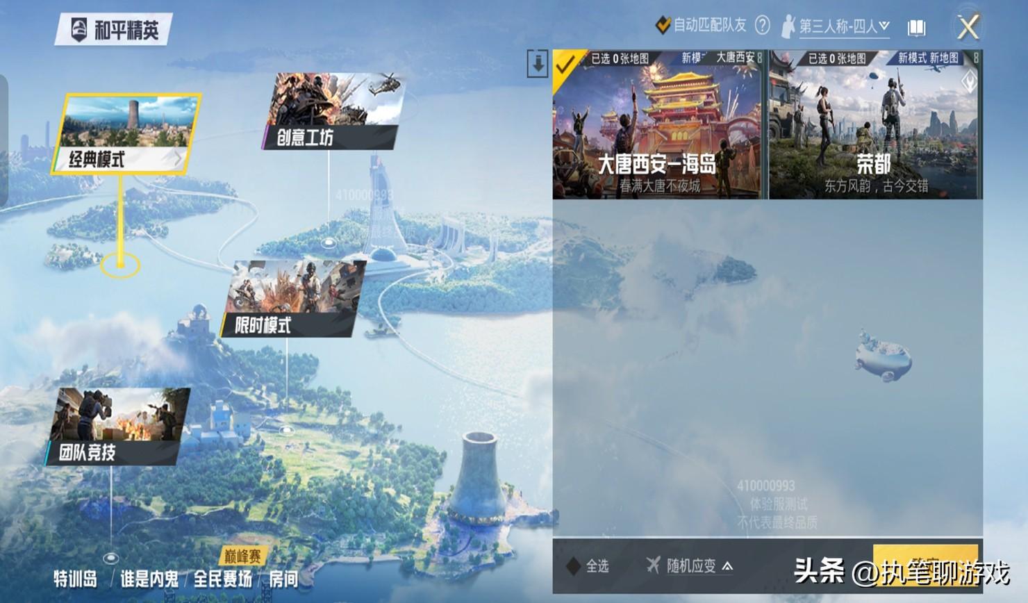 如圖所示,目前的體驗服已經再次開啓,此次不僅有常規的手遊版,而且還有PC高清版同步開啓,除了前文提到的主題海島“大唐西安”外,還有經典模式迎來的全新8X8大地圖“榮都”。