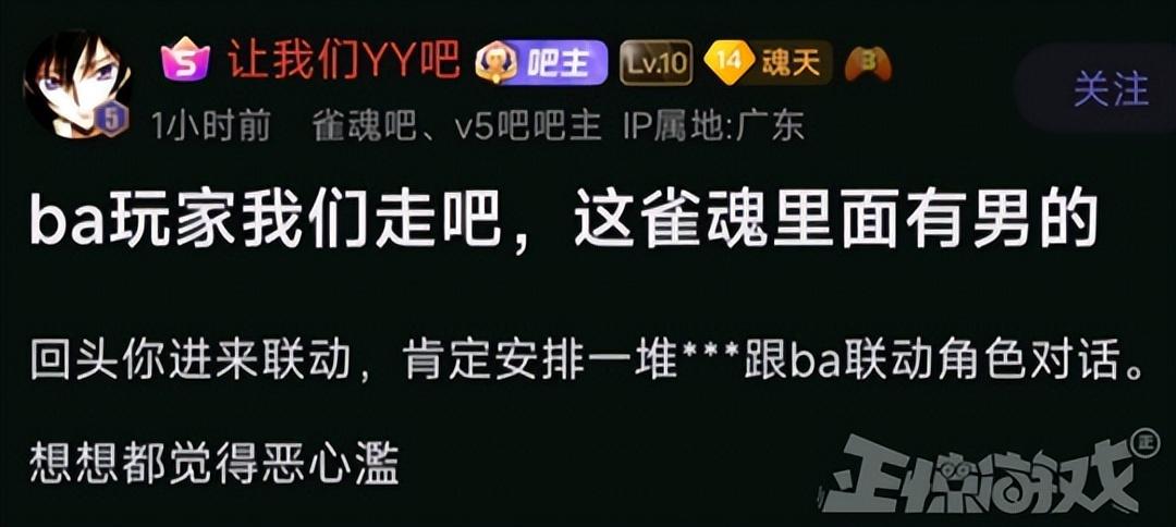 而在這個時候,對面《雀魂》貼吧的大吧主還跑來”貼臉開大“,陰陽怪氣《蔚藍檔案》玩家堅持了一輩子的”有男不玩“原則,結果不僅在聯動活動中輸掉了自己的女神,還要接受跟可能有聯動男角色上線的事實。