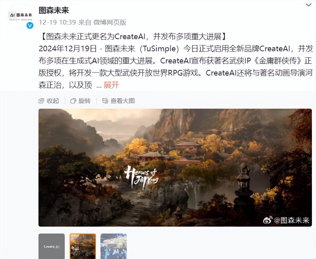 順帶一提,圖森未來這家公司已經徹底轉型爲一家AI公司,第一個大項目就是用AI去打造新《金庸羣俠傳》這款3A大作。