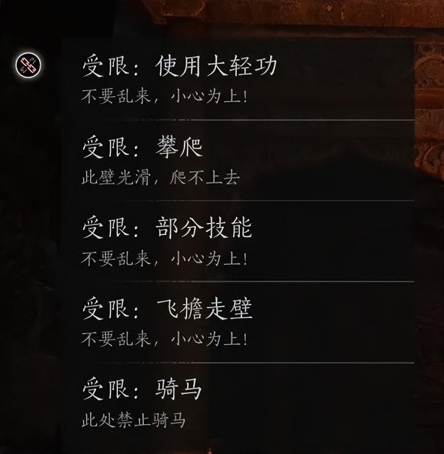 再比如說,爲了讓玩家在單人關卡探索時的體驗心流能保持穩定和一致。遊戲會把角色的動作性能限制得很死,什麼場景能多少能力,都分得很細。有的是不能騎馬,有的是不能三段跳,有的不是能空中衝刺......