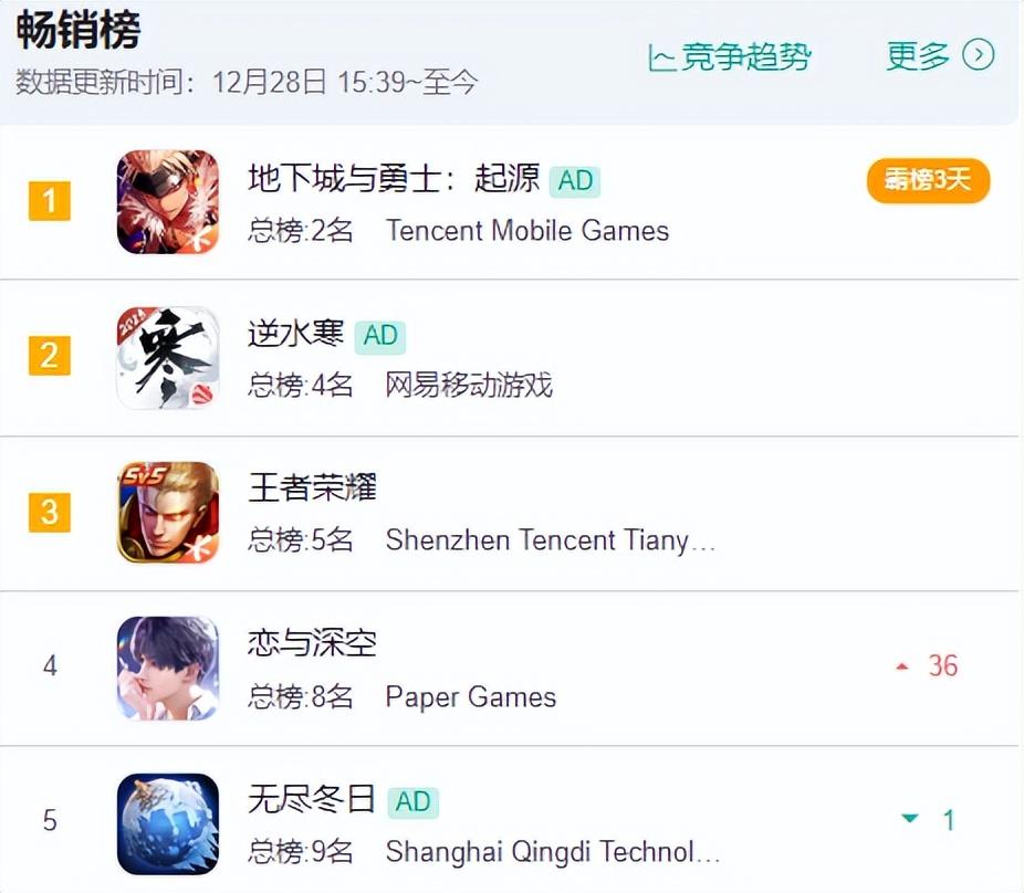 不僅如此,參與演唱會還可以免費白嫖時裝,加上大量的版本更新隨之上線,一度把《逆水寒手遊》衝回了暢銷榜榜二,甚至拿下了王者榮耀。