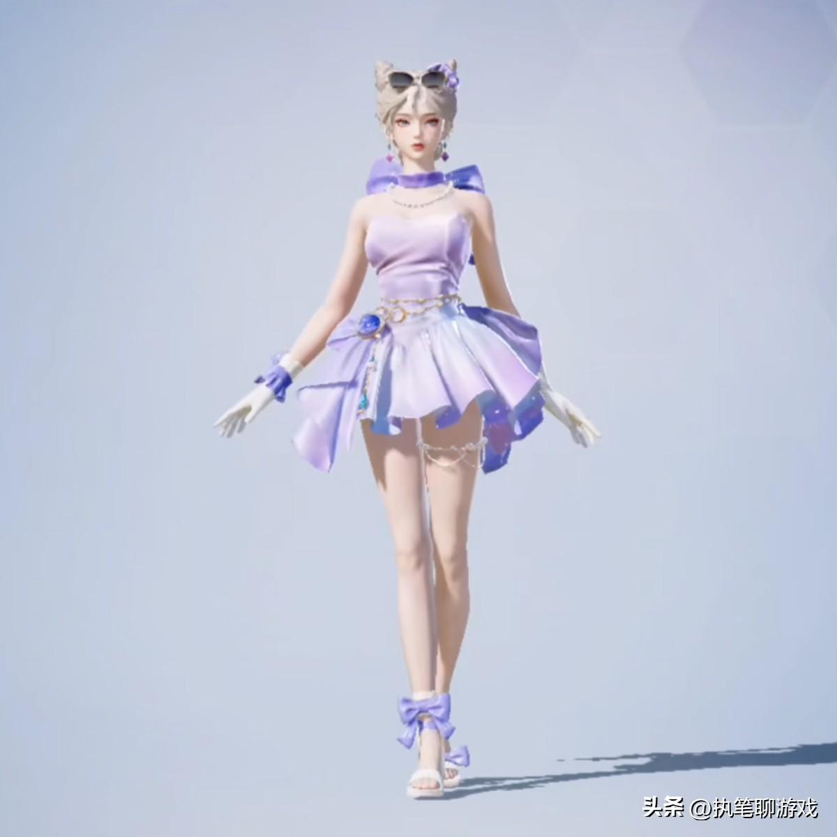 接下來的這個角色被命名爲“都市麗貓”,版型設定就是大家熟悉的連衣裙,也不知道爲什麼,天哥總覺得看起來非常眼熟,好像在之前的珍藏寶箱裏見過一樣,這種紫色光緞式樣的連衣裙在《和平精英》中太過於常見了。