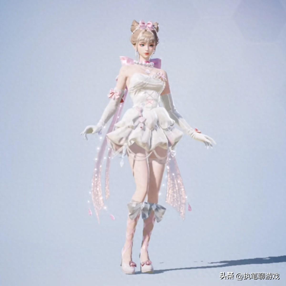 首先說C位套裝“千金淑貓”,光子加入了大量熟悉的元素,它就是“蝴蝶結”,背面、項鍊都有出現,碧色的眼眸看起來含情脈脈,貓兒造型的盤發也非常可愛。
