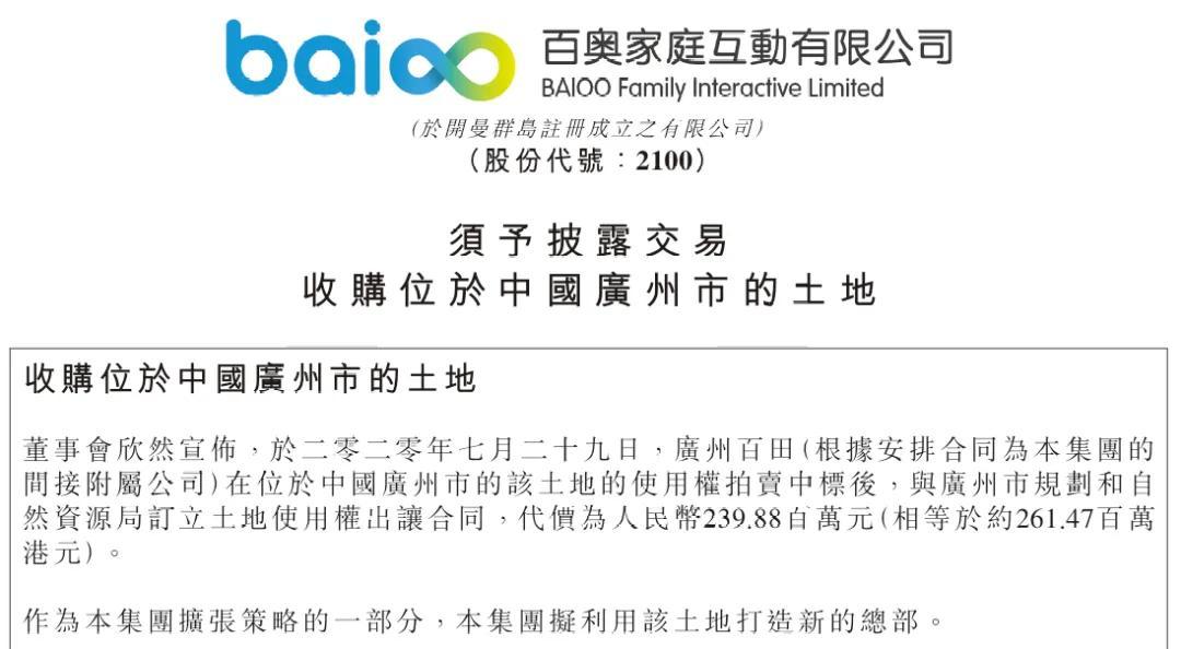 《食物語》《奧拉星》開發商百奧(百田),2020年就花2億多元在天健東買了地塊,來打造自己的新總部;